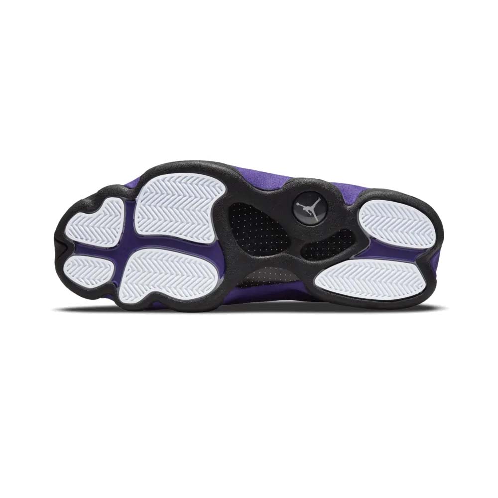 The Air Jordan 13 hasn’t celebrated a milestone anniversary throughout 2020 as some of its counterparts have, but it’s remained in headlines thanks to ESPN’s “The Last Dance” docu-series, the Jordan Women’s Reign and a handful of solid colorways. For 2021, the panther-inspired model is rumored to launch in a “Black/Court Purple/White” makeup sure to instantly sell out. An early mock-up of the pair suggests that the release will follow that of an inaugural option, as the upper is split between the two darkest aforementioned hues. Unlike the Jordan 13 “Bred,” however, the forthcoming retro is depicted with a dimpled leather vamp-to-heel overlay instead of a mesh variant. A holographic eye remains at the lateral heel, while the upper’s suede component indulges in “Court Purple” (which has had a stellar 2020); part of the midsole also partakes in the rich color, while the panther paw-reminiscent outsole grooves revert back to a “Black” makeup. In a move that’s somewhat of an eyebrow-raiser, the outsoles have been dipped in a contrasting “White” arrangement, which may lead some consumers to pick up a Sharpie marker or spray paint can .