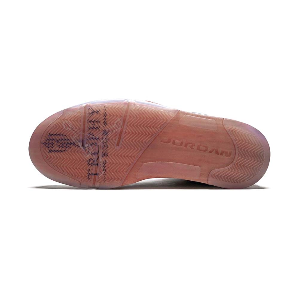 The Trophy Room x Air Jordan 5 Retro sneaker draws inspiration from the real-life trophy room in the Jordan family home. This ‘Ice Blue’ rendition is replete with a rich suede upper, hits of University Red, Sail and a metallic gold lace lock. Each lateral heel is embroidered with metallic gold numerals—’23’ and ‘5’—the jersey numbers worn by MJ and his son, Marcus. Below, the sneaker’s translucent rubber sole displays a wood-grain motif to reference the court-style flooring in MJ’s trophy room.